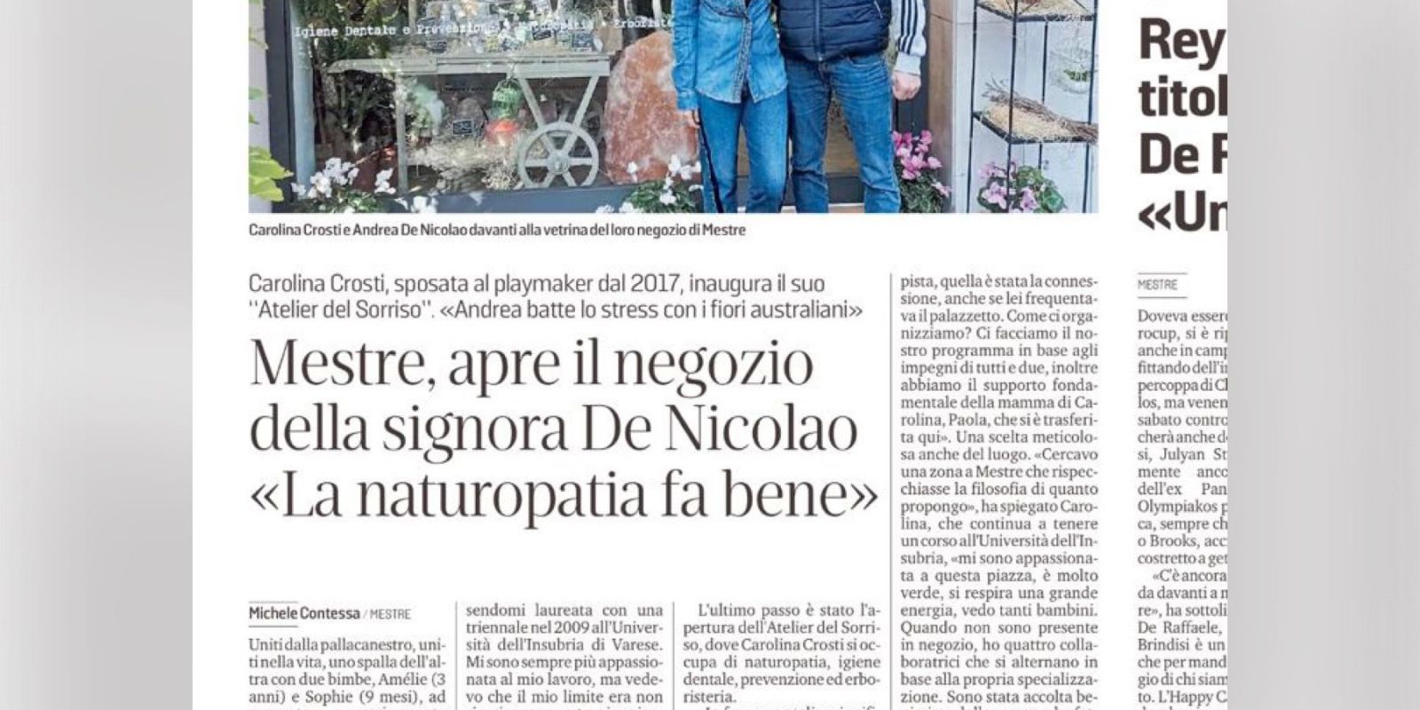 Ecco un articolo della Nuova Venezia pubblicato domenica 22 ottobre 2021 https://nuovavenezia.gelocal.it/sport/2021/10/29/news/mestre-apre-il-negozio-della-signora-de-nicolao-la-naturopatia-fa-bene-1.40864336